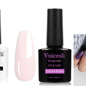 Transparent Nude Pink Gel Nail Polish & 3D Glitter Silver Line Art Gel Nail Art