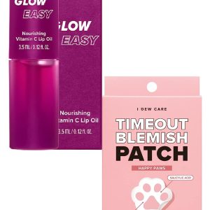 Hydrocolloid Acne Pimple Patch – Timeout Blemish Happy Paws, 36 Count + Lip Oil Gloss – Glow Easy, 0.12 Fl Oz Bundle