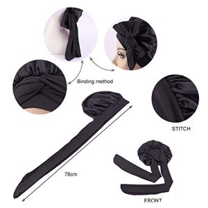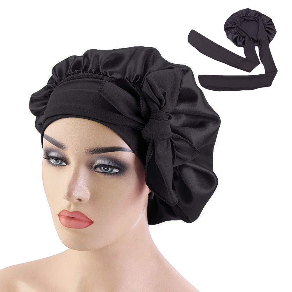 Wide Band Satin Bonnet Cap,Bonnets For Women,Silky Bonnet For Curly Hair,Women Hair Wrap For Sleeping (Black)