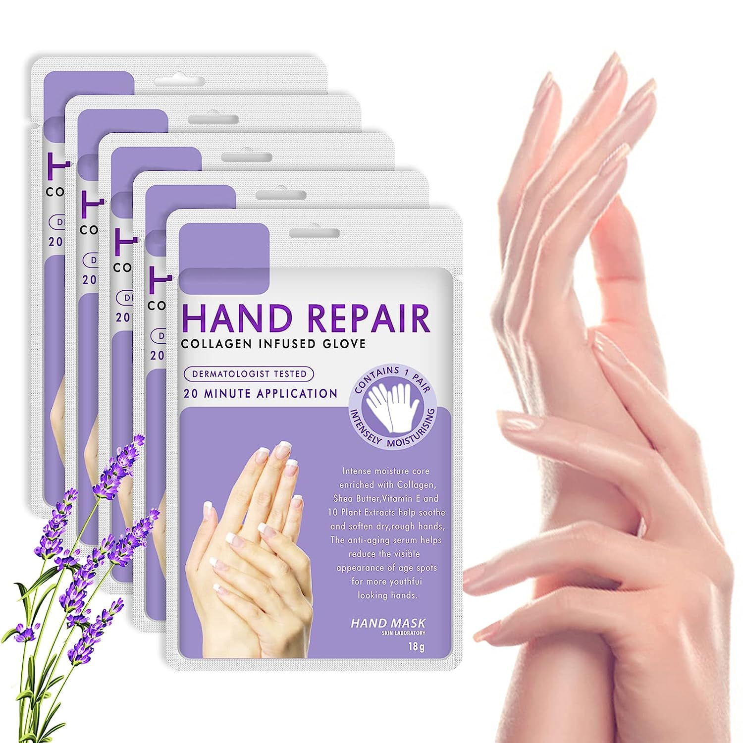 Hand Mask 5 Pairs, Hand Mask Moisturizing Gloves for Dry Hand Spa Mask Contain Natural Plant Extracts Vitamin C, Repairing Rough,Dry, Aging Skin, Suitable for Hand Moisturizing,Winter