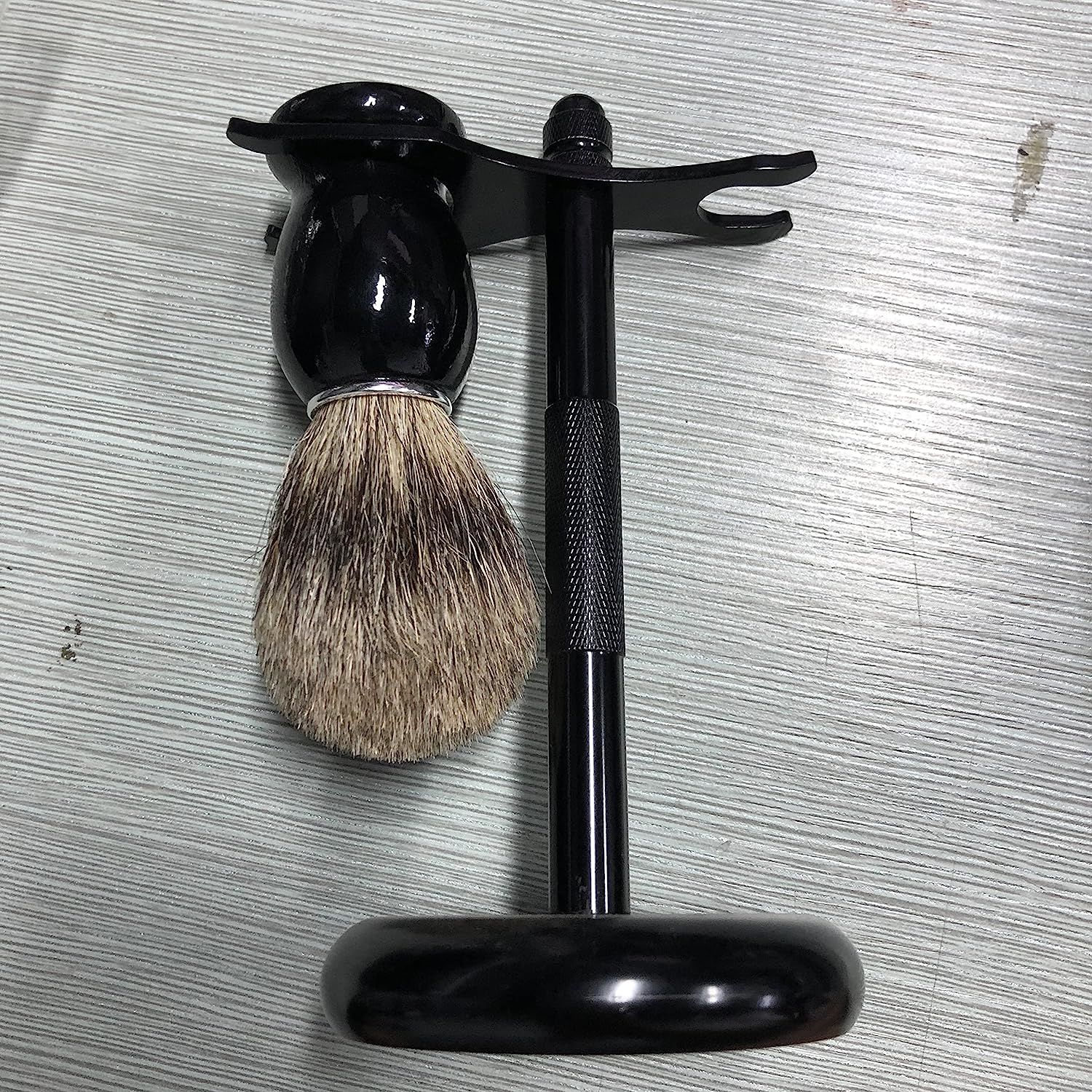 Pure Badger Hair Wood Handle Shaving Brush with Chrome Razor and Brush Stand