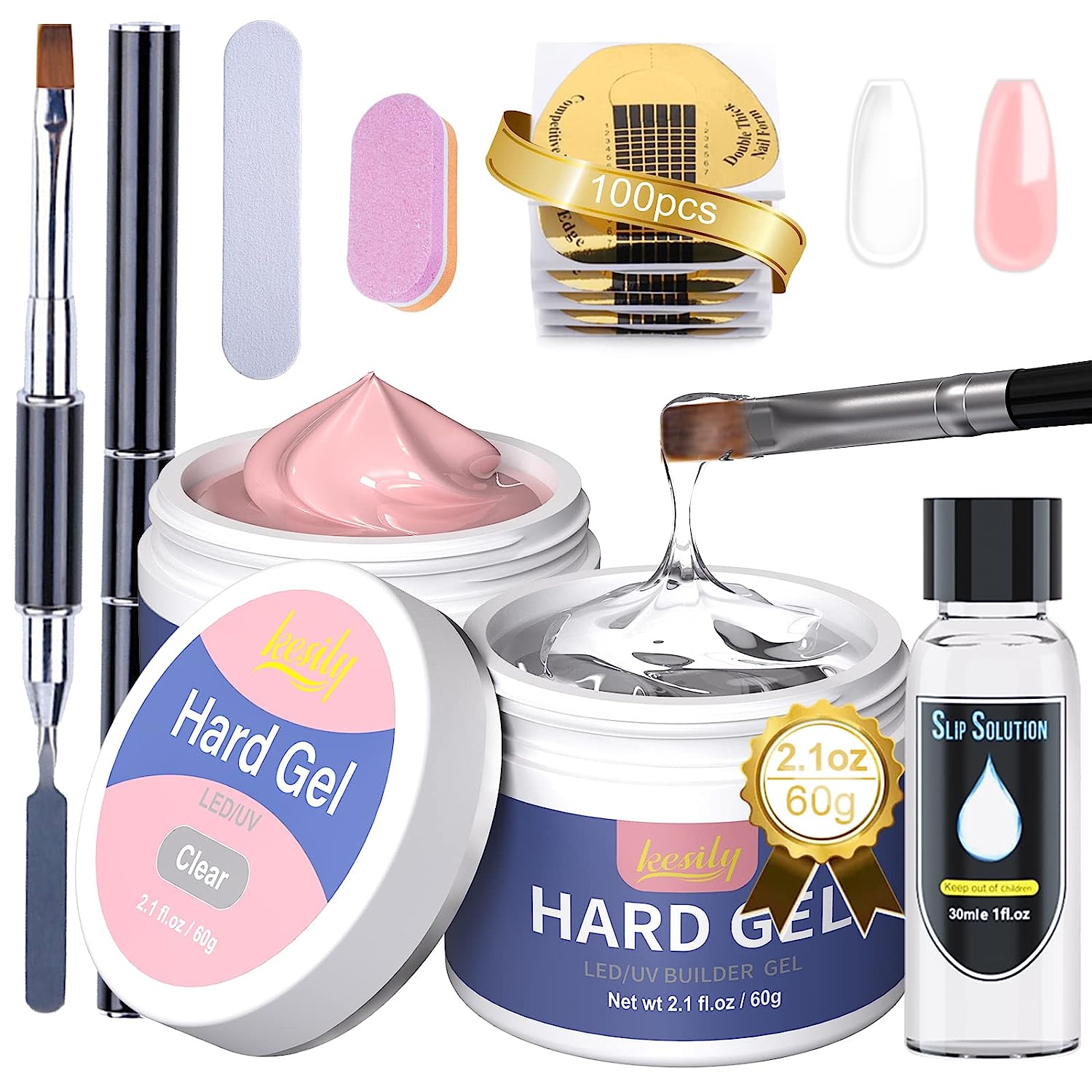 Builder Nail Gel – 2oz Clear Hard Gel for Nails, Nail Extension Gel Nail Kit Acrylic Gel Nail Strengthen Gel Nail Art Manicure Set with 100PCS Nail Forms and Dual-use Acrylic Nail Brush Professional DIY at Home