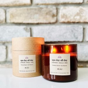 Spa Day All Day Candle | Lavender, Vanilla, Sage, Packaged for Easy Gift Giving, 100% Natural, Heavily Scented, Coconut Wax Blend, Made in The USA, 60 hr Burn time, 9 oz