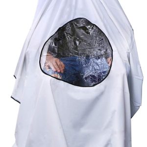 Salon Home Barbers Hairdressing Cape Gown with Viewing Window for Hair Cutting 62.9 * 57′(White)