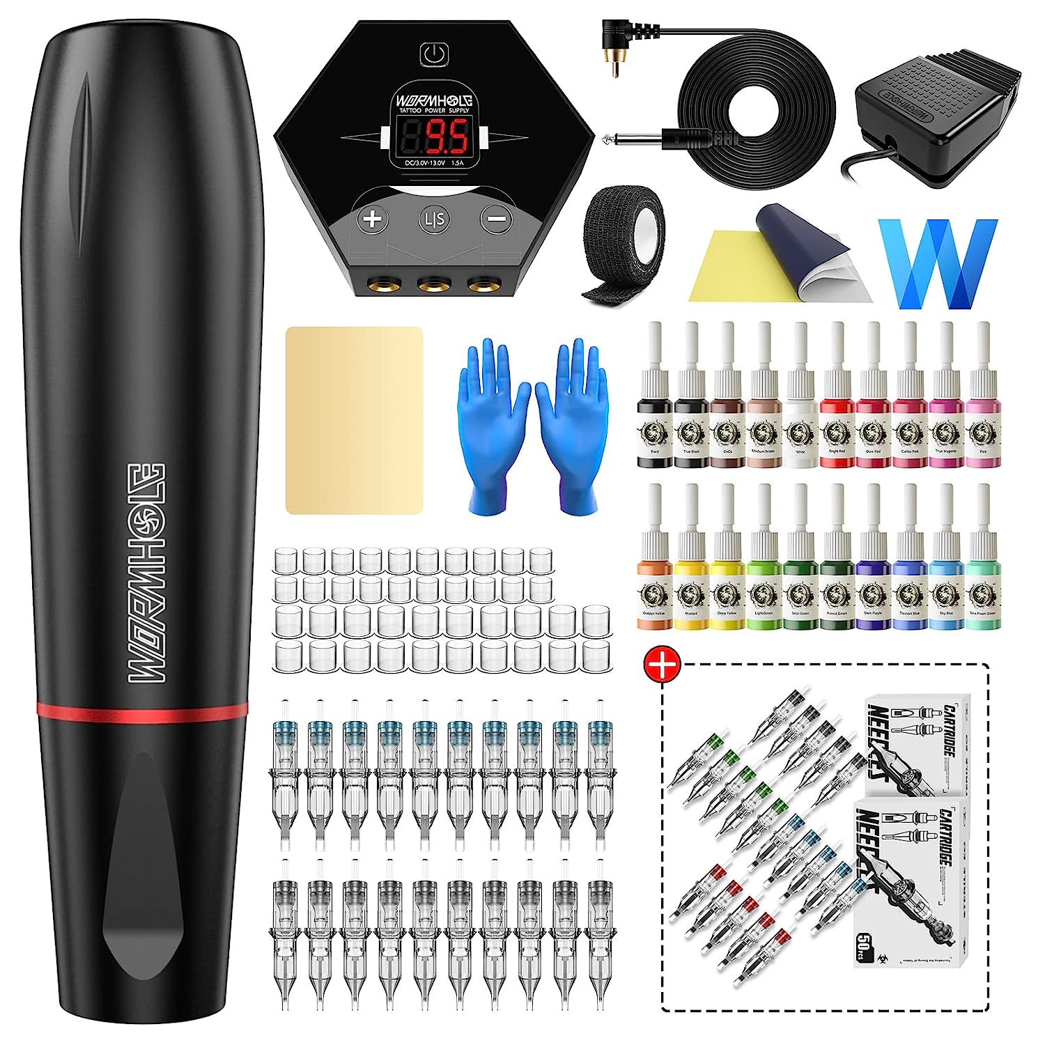 Complete Pen Kit Rotary Pen Machine Digtal LED Power Supply with 80Pcs Cartridges for Beginners