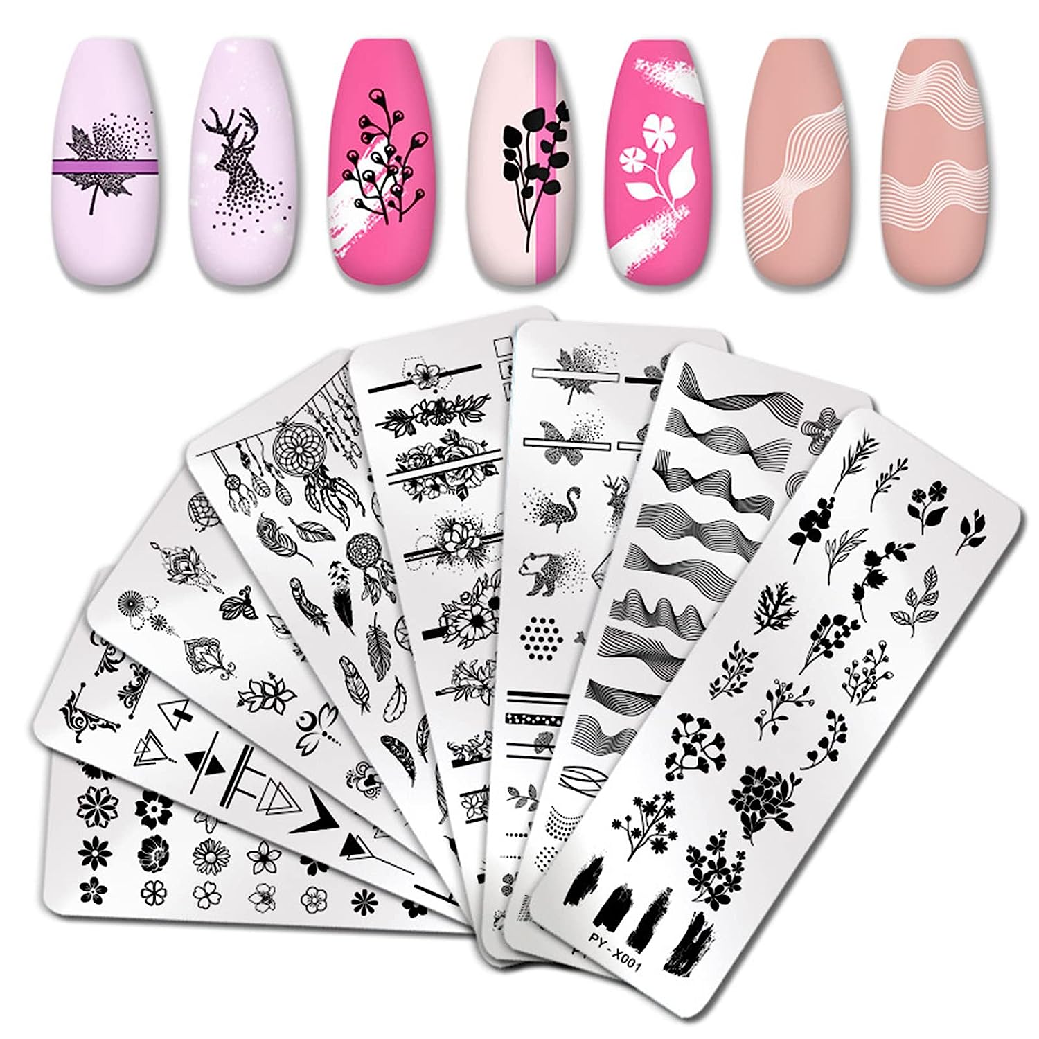 Sheets Nail Stamping Plate Geometric Image Lines Leaves Pattern Stainless Steel Nail Image Polish Manicure Stencils Tools for Gift Birthday Party Gift Favors