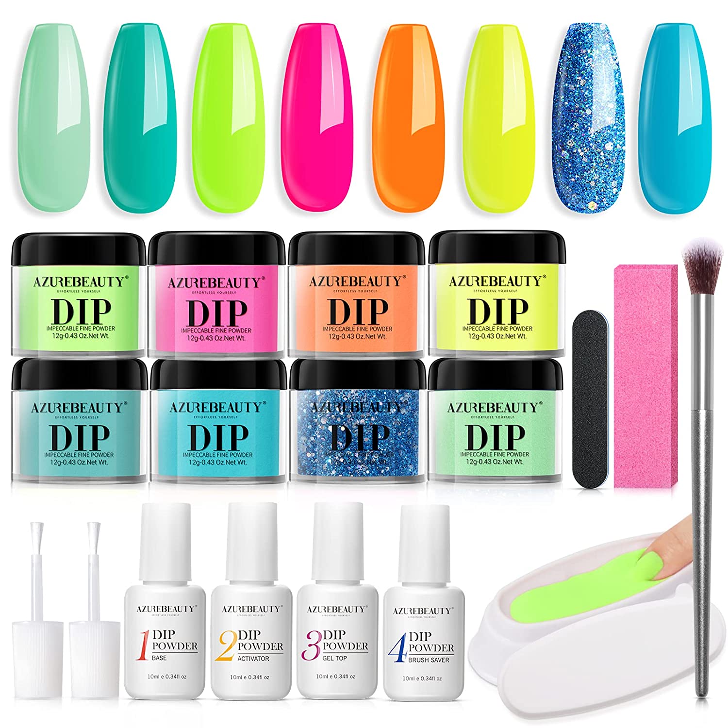 18Pcs Dip Powder Nail Kit Starter, Spring Summer Colors Pastel Neon Yellow Blue Hot Pink Acrylic Dipping Powder Liquid Set with Base/Top Coat for Beginners French Nails Art Manicure Salon