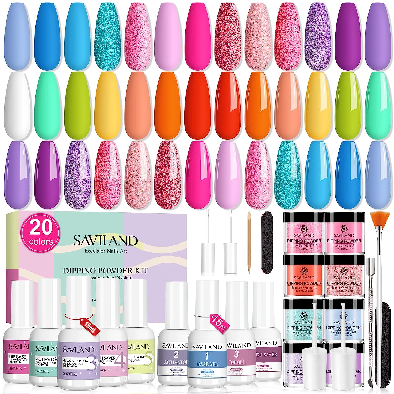 29Pcs Dip Powder Nail Kit & Saviland 5*15ml Dip Powder Liquid Set