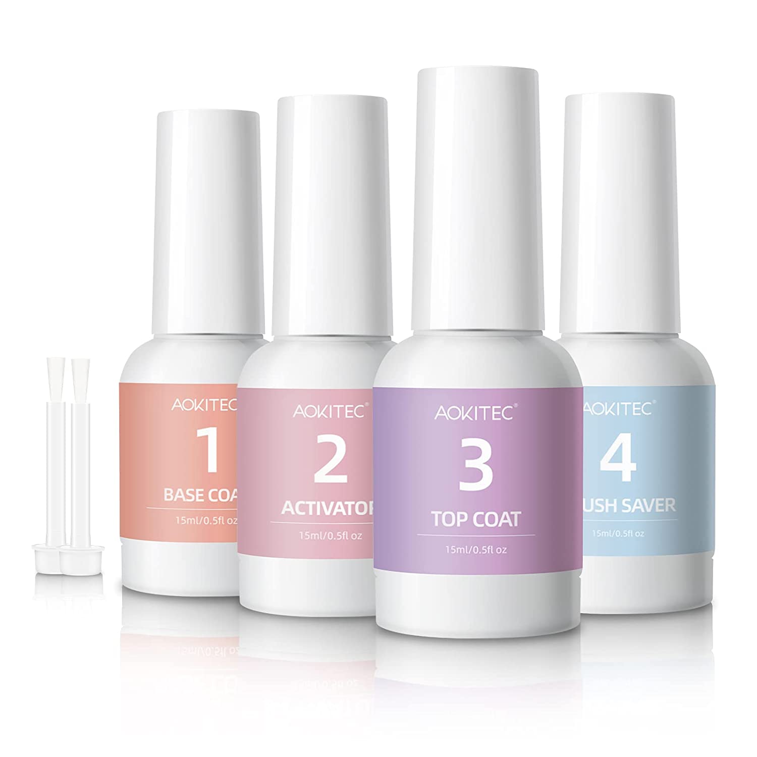 Dip Powder Liquid Set 0.5oz Acrylic Dipping Powder Gel With Base & Top Coat Activator Brush Saver Nail Dip liquid Nail Tools Kit 4+2Pcs Manicure Set for Home DIY & Salon Use