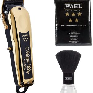 5 Star Gold Cordless Magic Clip Hair Clipper, 5 Star Series Barber Cape & Neck Brush Bundle