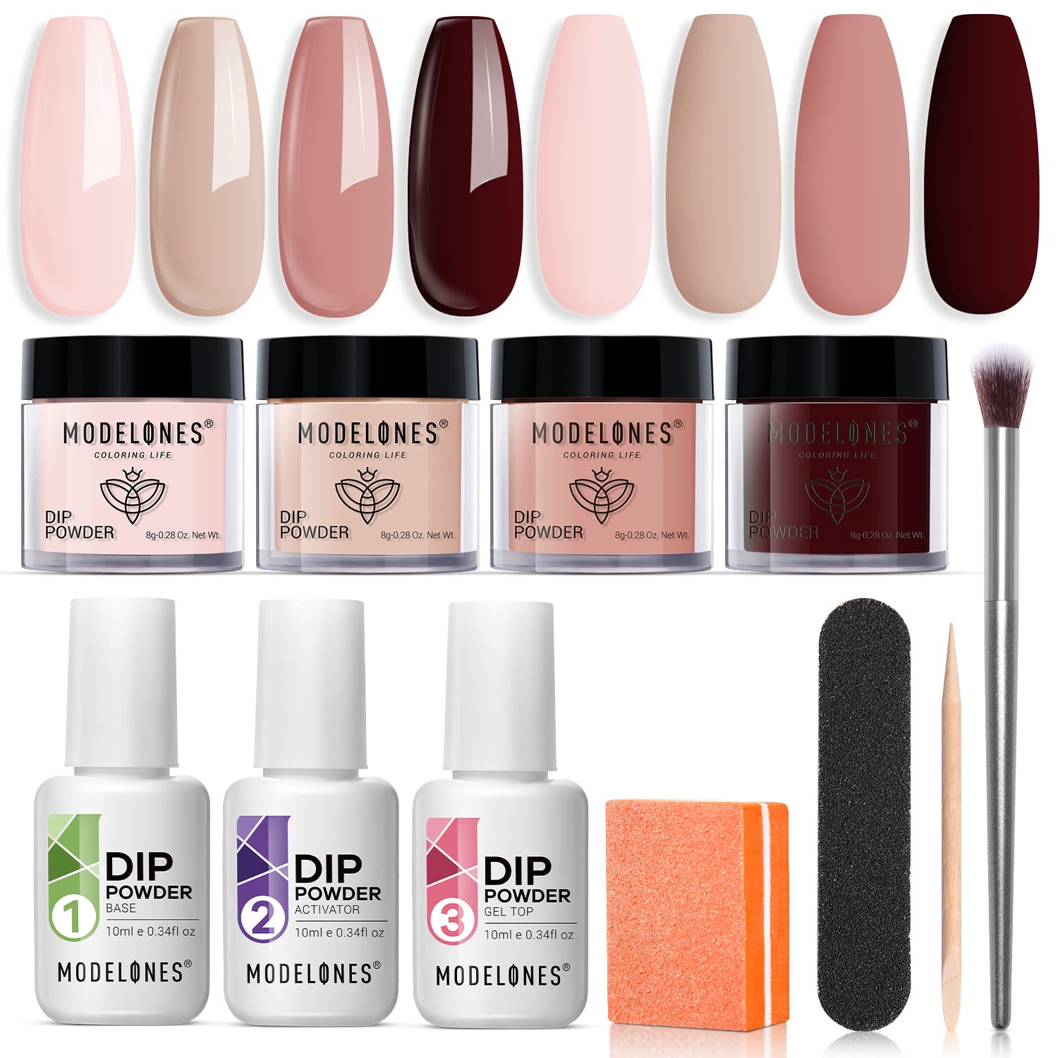 Dip Powder Nail Kit Starter, 4 Colors Nude Sheer Pink Skin Tones Neutral Dipping Powder Essential Liquid Set with Base Top Coat Activator All Seasons French Nail Art Manicure DIY Salon All-in-One Beginner Kit Gift