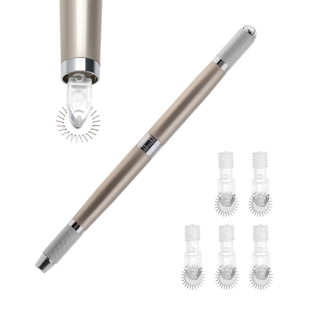 Professional Manual Tattoo Permanent Makeup Eyebrow Pen Microblading Pen, Double Head, Pack of 5