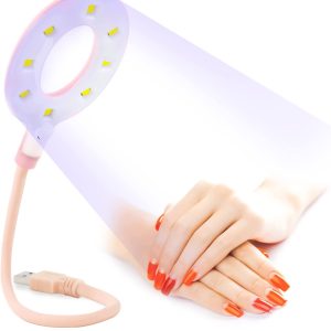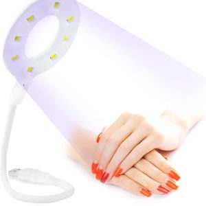USB UV LED Nail Lamp 16W Mini Nail Lamp Dryer for Gel Nails, 8 UV/LED Beads, Flexible Gooseneck Cord, 60s Curing Time, Portable Gel Nail Polish UV LED Nail Light for Travel and Home Nail Art