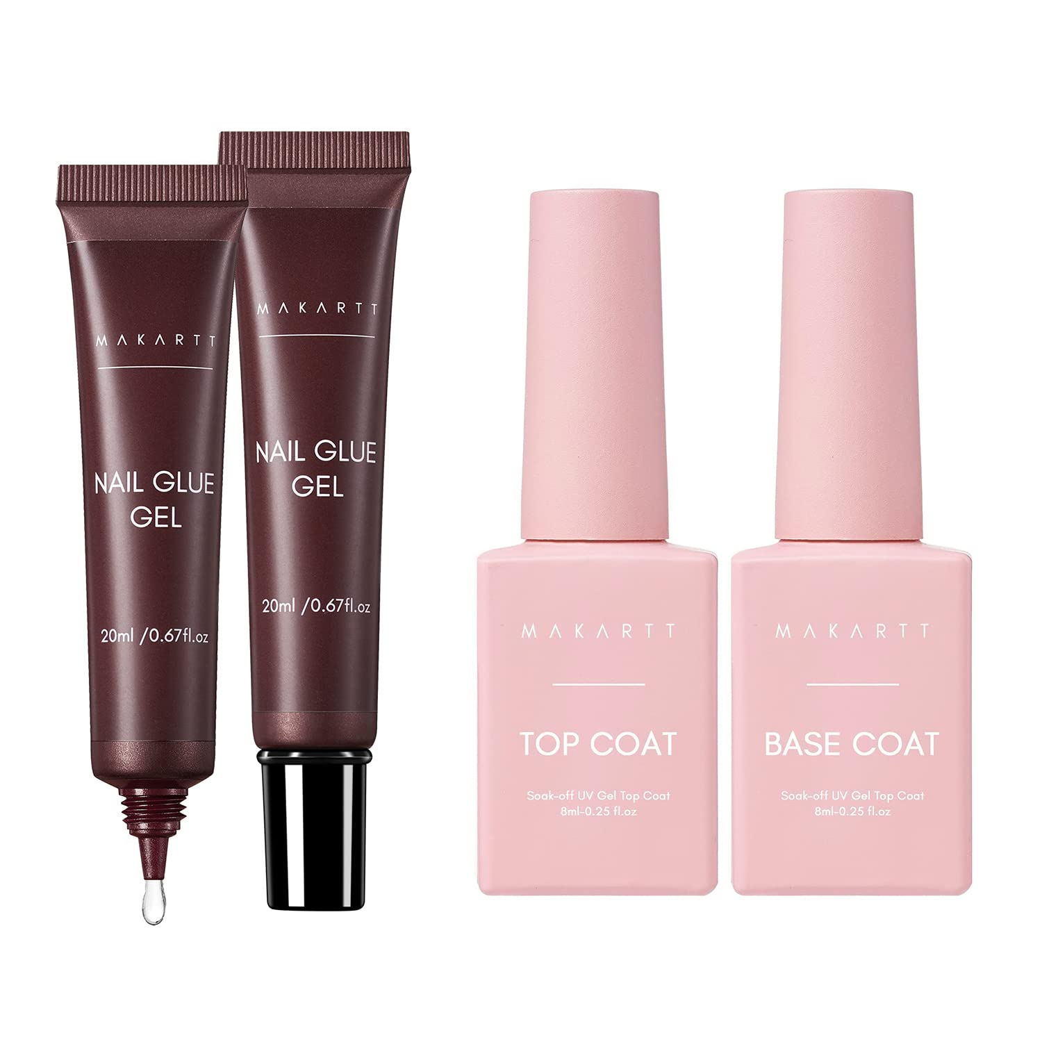 No Wipe Top Coat and Base Coat Kit, Clear Gloss Shiny Stain Resistant Gel Top Coat Bundle Gel Nail Glue, Solid Nail Gel for Soft Gel Nail Tips 20ML Nail Lamp Needed Multifunctional Nail Tools