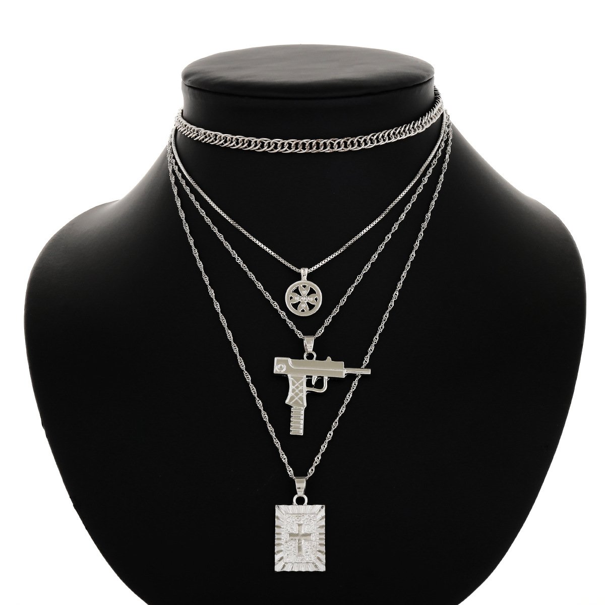 Multilayer Necklace Silver Medal Pistol Charm Pendant Alloy Chic Necklace Gift for Her