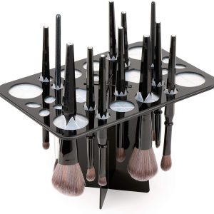 Makeup Brushes Drying Rack, Brushes Dryer, Collapsible 28 Slot Acrylic Brush Holder Stand Tree Tray Support Display for Makeup Artist Acrylic Nail Brushes Paintbrushes Makeup Lovers, Black