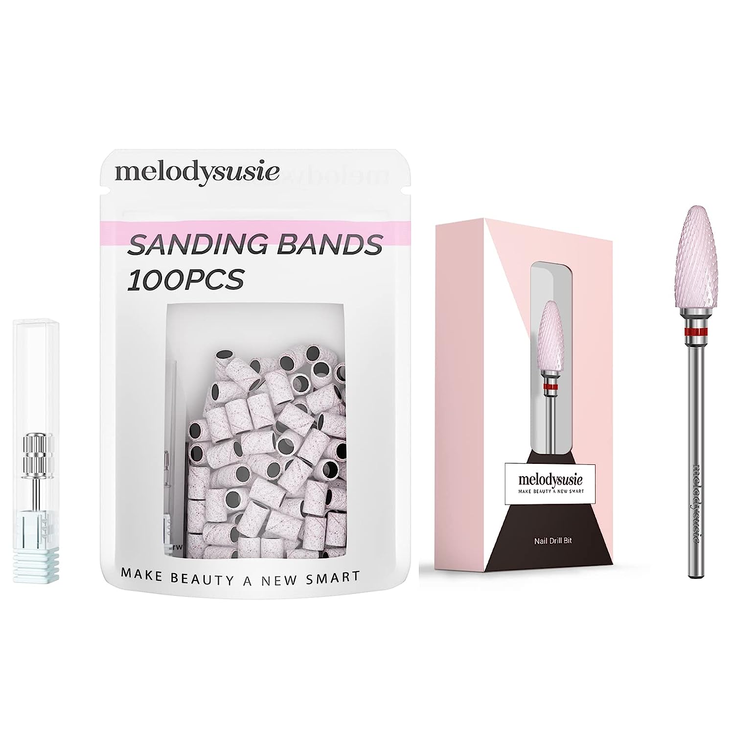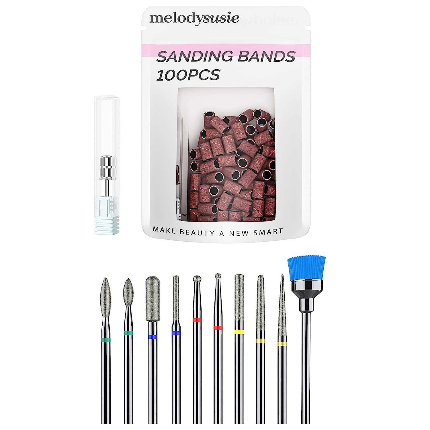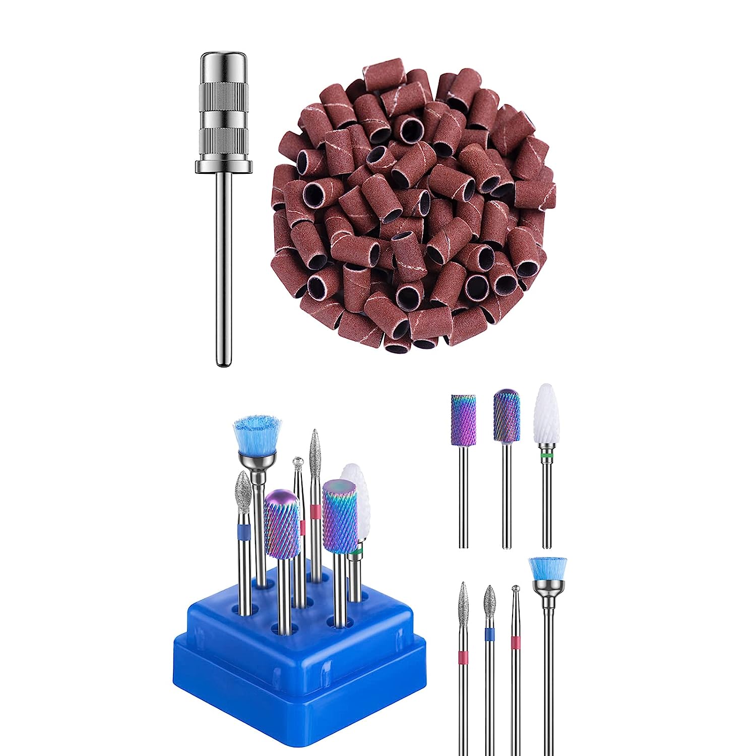 100 Pcs Nail Drill Bits Sanding Bands with Safety Nail Drill Bits