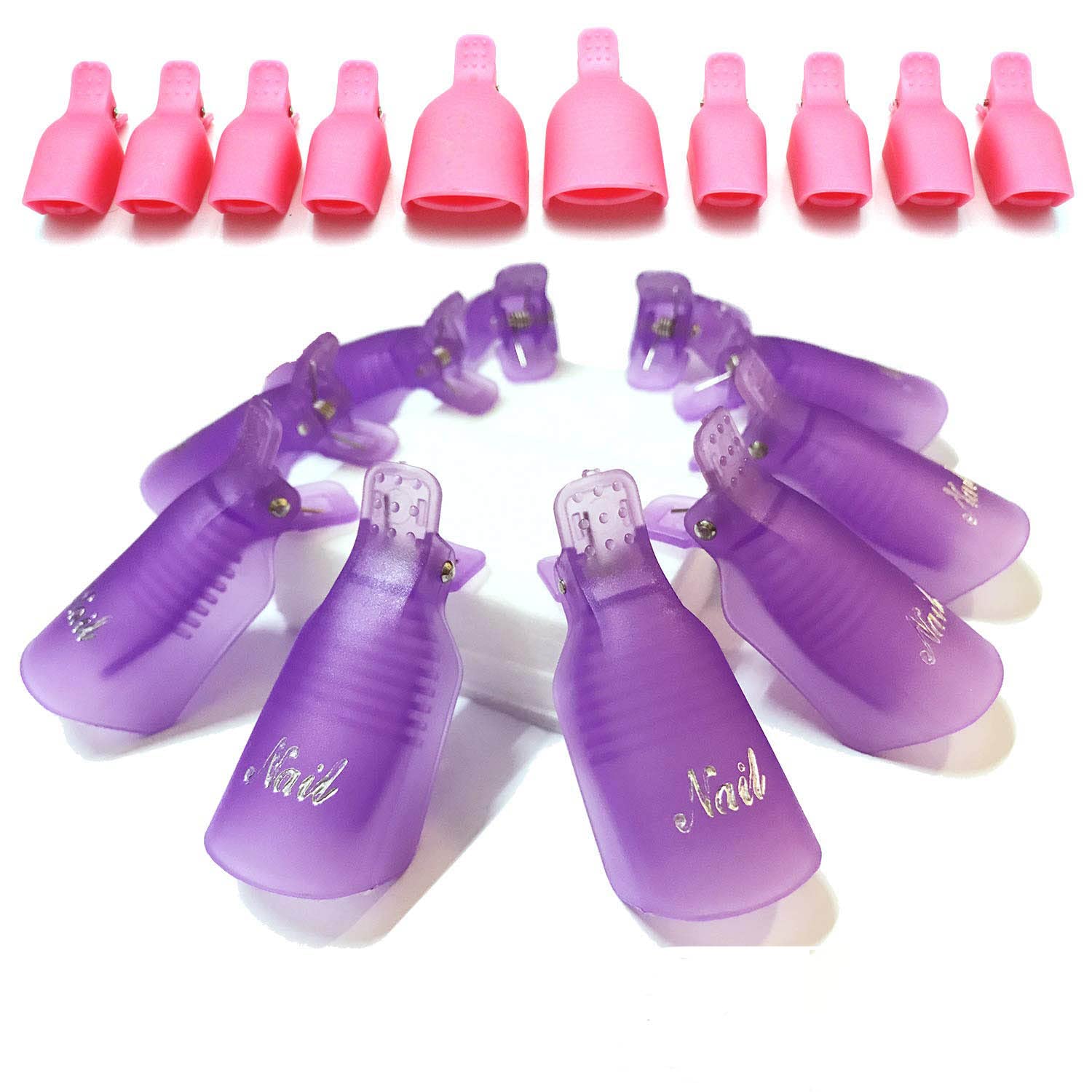 Nail Polish Remover Clips Set 10 + 1000 PCS Soak Off Nail Gel Polish Remover Clip Caps 1000 PCS Lintfree Nail Wipes Cotton Pads Wraps for UV Gel Acrylic Nail Polish Removal (Purple)