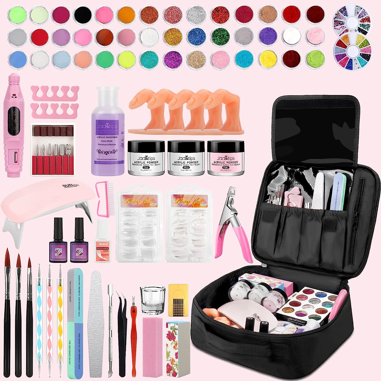 Colors Acrylic Nails Kits with Drill and UV Light- Acrylic Nail Powder Glitter and Monomer Liquid Kit with Nail Storage Bag, 5PCS Practice Finger, Nail Kit Acrylic Set with Everything for Beginners