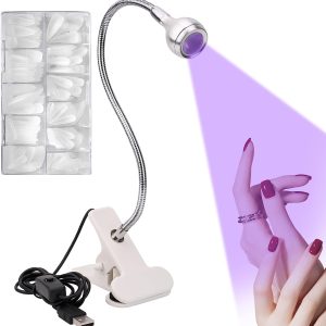 Mini UV Light for Gel Nails Polish Resin Curing with 240PCS Gel X Nail Tips Gooseneck UV Lamp for Nails 3W Professional Acrylic UV Gel Nail Polish Lamp LED UV Nail Lamp for Gel Nails Silver