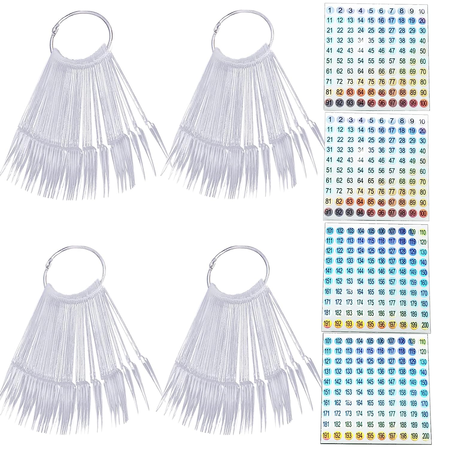 Pcs Nail Swatch Sticks with Ring and 4 Sheets Numbered Stickers(0-200) Clear Nail Sample Color Display Sticks Stiletto Nail Swatches