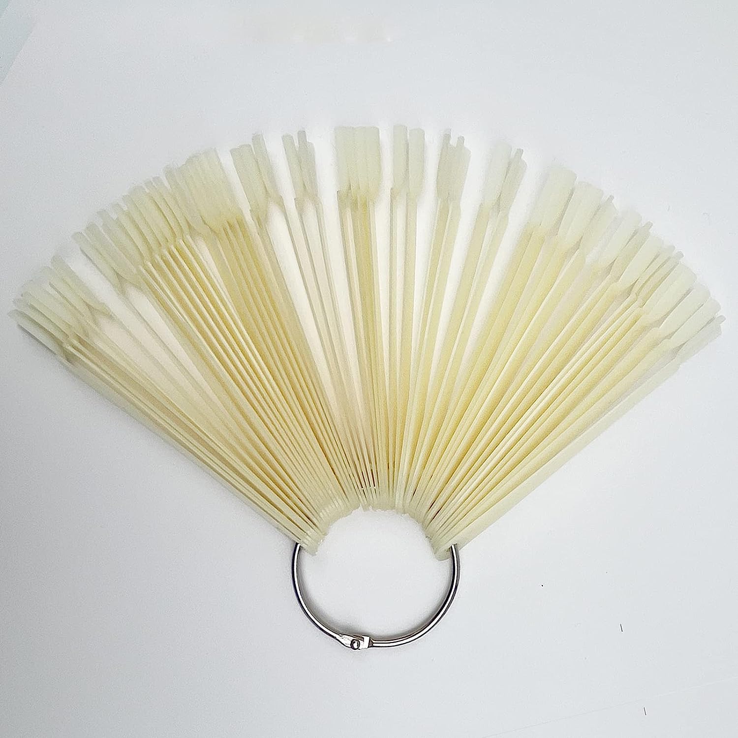 Natural Nail Swatches Sticks, Nail Art Supplies for Nail Art Polish Display and Home DIY, Nail Sample Practice Tips Color Board Art Accessories with Ring – 50 Pack