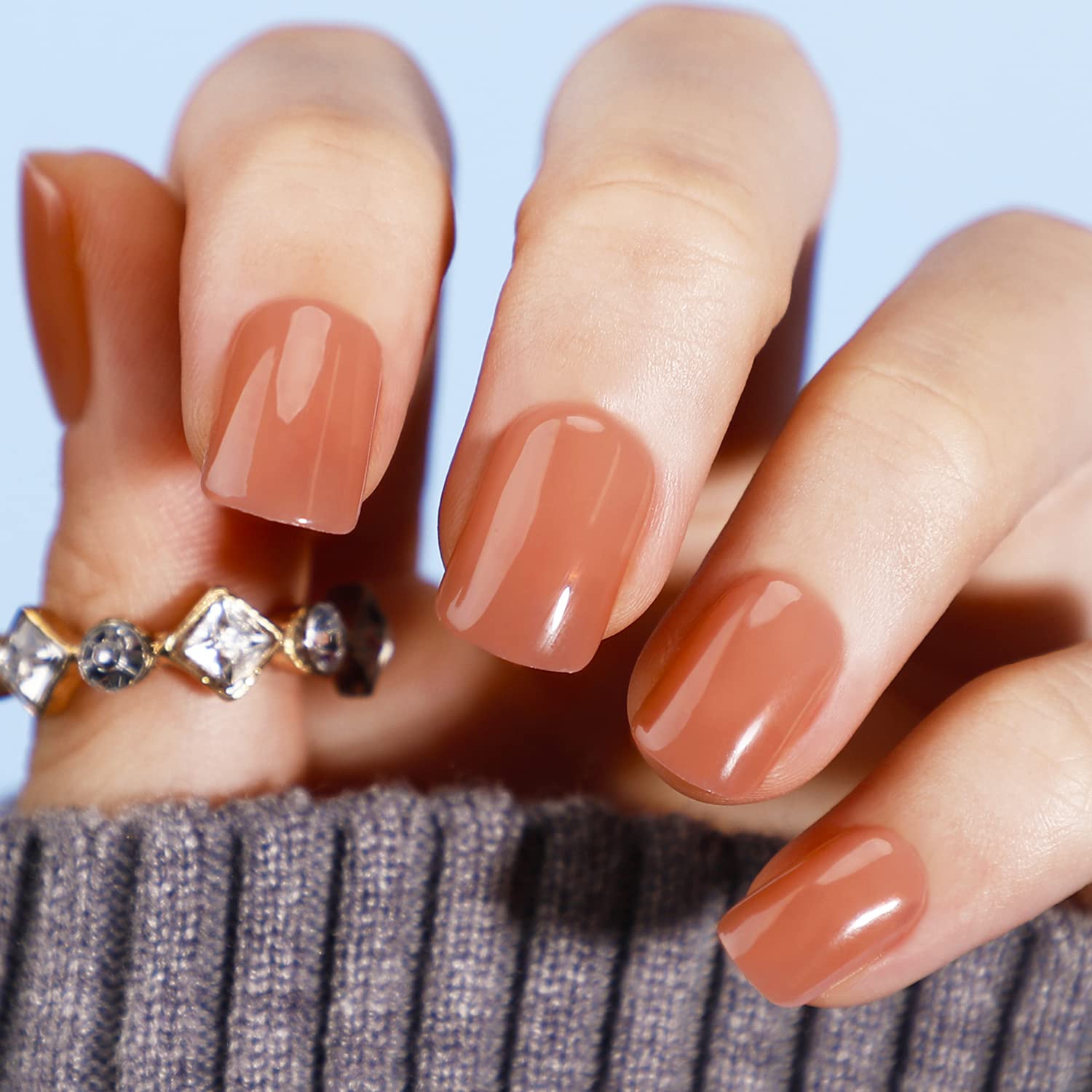 Short Gel Press on Nails, Square 24 Pcs 12 Size Press-On Acrylic Fake False Gel Nails Manicure Set for Women and Girls, Brown Chestnut