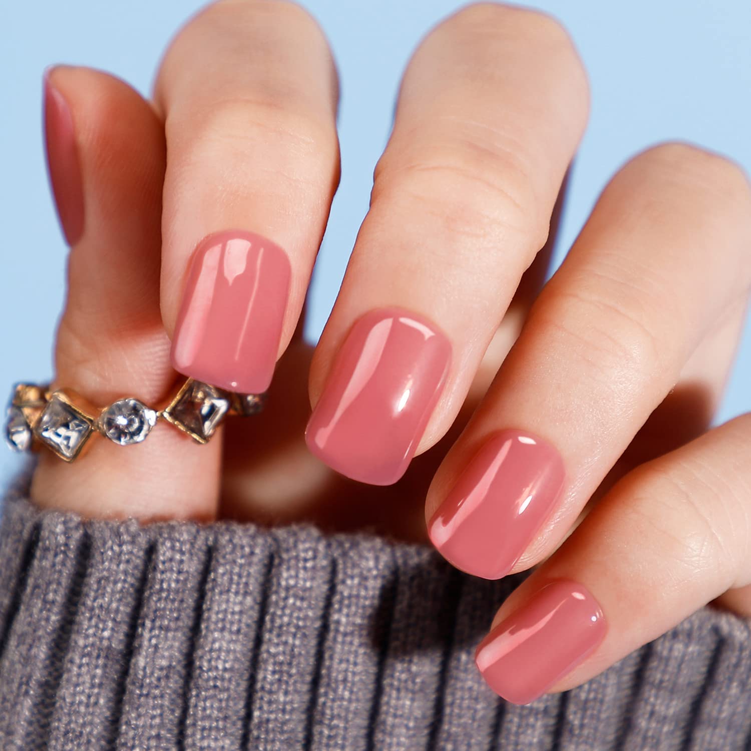 Jelly Gel Press on Nails, Short Square 24 Pcs 12 Size Spring Summer Press-On Acrylic Fake False Gel Nails Manicure Set for Women and Girls, Pink Jelly
