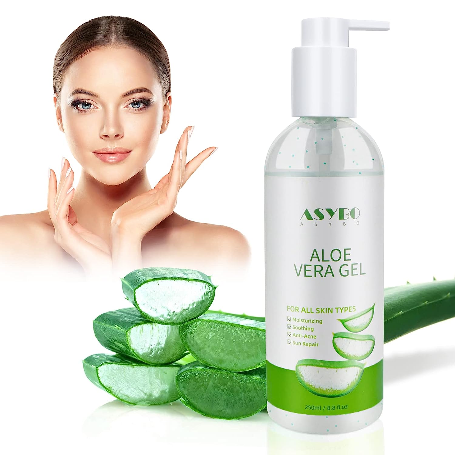 Aloe Vera Gel, 100% Natural Pure Aloe Vera Hydrating Facial Moisturizer, Soothing & Moisturizing, After Sun Care, Reduce Acne, Repair Scars, Suitable for All Skin Types, 250ml / 8.8 fl oz