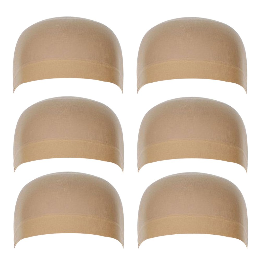 6 Pack Nylon Stocking Wig Caps for Women and Men Elastic Stretchy Neutral Nude Beige