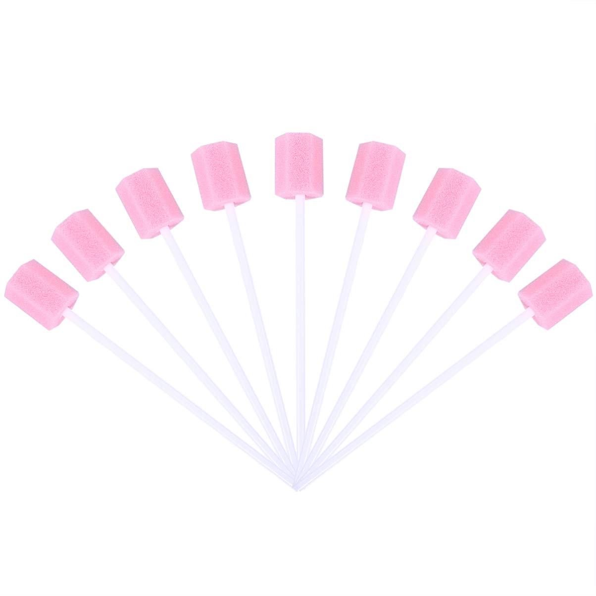 100pcs Oral Care Sponge Swab Disposable Mouth Swab Tooth Cleaning Tool Dental Care Kit (Pink)