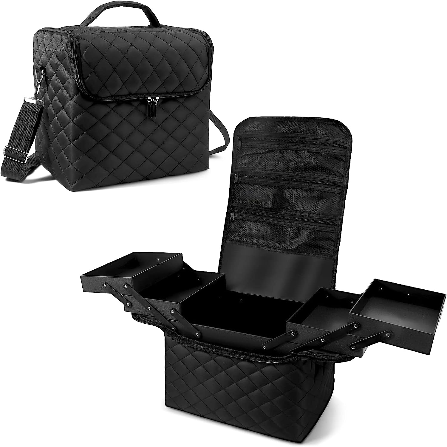 2-tiers Extendable Trays Cosmetic Makeup Train Case Organizer Travel – VK002, Black Glitter,VK002-51