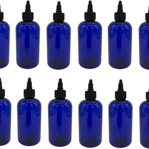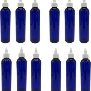 2 oz Blue Cosmo Plastic Bottles -12 Pack Empty Bottle Refillable - BPA Free - Essential Oils - Aromatherapy | Black Flip Top Snap Cap - Made in the USA - by