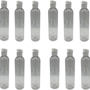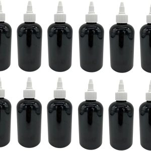 2 oz Green Cosmo Plastic Bottles -12 Pack Empty Bottle Refillable - BPA Free - Essential Oils - Aromatherapy | Black Press Down Disc Cap - Made in the USA