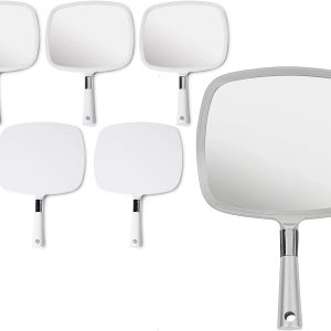 Pack of 5 Large & Comfy Hand Held Mirror (White) and 1-Pack Large Hand Held Mirror (Silver)