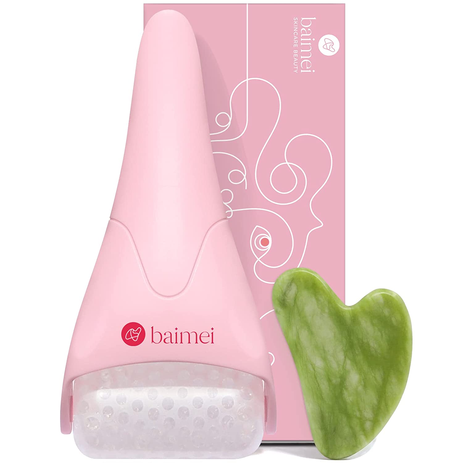 Ice Roller and Gua Sha Facial Tools, Ice Roller for face Reduces Puffiness Migraine Pain Relief-Pink