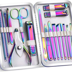 2020 New Rainbow Manicure Kits 18 Pcs Nail Clippers for Women Gift Women”s Rainbow Leather Manicure Set (18-RainbowManicure Kits)