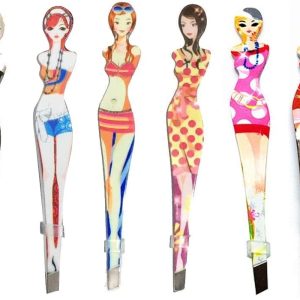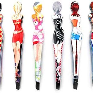 Eyebrow Tweezers Pinkiou Professional Slant Tip Brow Clip Hair Removal Makeup Tool With Printed Beauty Cover Cosmetic 6 Style Pack Of 6 Pcs (Bikini)