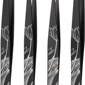 Eyebrow Tweezer Set 4PCS, Great Precision Tweezers Kit,twizer for eyebrows,for ingrown hair,for plucking hair,for chin hair,for men & women(black flower) : Beauty & Personal Care
