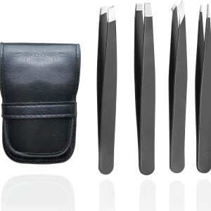 Eyebrow Tweezers Set for Women & Men, 4Pcs Professional Stainless Steel Slanted and Pointed Tweezer Set to Remove Facial Hair, Spl YLT-2 Tweezers – 1 : Beauty & Personal Care