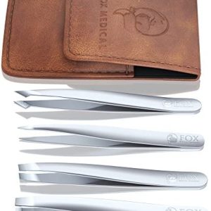 Fox Medical Equipment Stainless Tweezer Set – Best Eyebrow Tweezers For Women – Precision Tweezer Set – Sharp Tweezers For Ingrown Hair Removal – Fine Point Brow Tweezers – Facial Hair Plucker