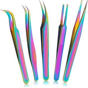 Generl Rainbow Tweezers Set for Eyelash Extensions Straight and Curved Stainless Steel Precision Tweezer for Lash Nail Art Ingrown Hair Craft Work 5 Pcs, 5 inches : Beauty & Personal Care