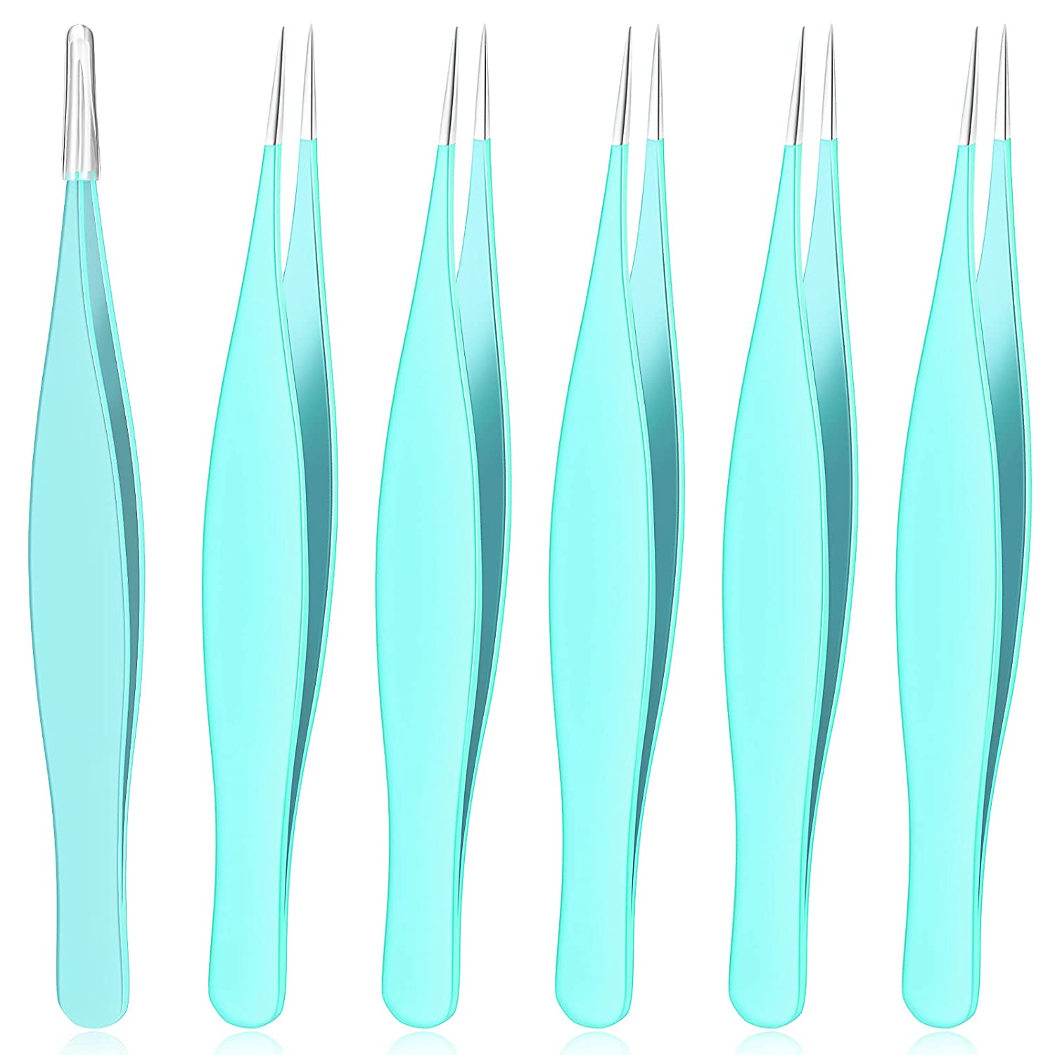 6 Pieces Pointed Tweezers Ingrown Hair Tweezers Precision Needle Point Tip Tweezers Stainless Steel Tweezers for Nose Facial Hair Eyebrow Blackhead Remover (Blue) : Beauty & Personal Care