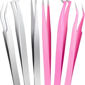 6 Pieces Eyelash Extension Tweezers, Straight and Curved Tip Stainless Steel Tweezers Nippers Volume Lash Tweezers for Eyelash Extensions False Lash Application Tools (Laser) : Beauty & Personal Care
