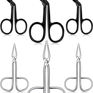 6 Pieces Craft Tweezers Crossing Lock Curved Tweezers Stainless Steel Soft Grip Precision Tweezers Reverse Grip Tweezers Fine Tip Tweezers for DIY Craft, Jewelry, Beading, Electronics, Laboratory Work : Beauty & Personal Care
