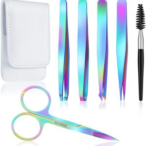 6 Pieces Eyebrow Tweezers Set With Curved Scissors, Eyelash Brush Stainless Steel Brow Remover Tools For Women And Girls, Hair Plucking Daily Beauty Tool With Storage Case (Rainbow Color)