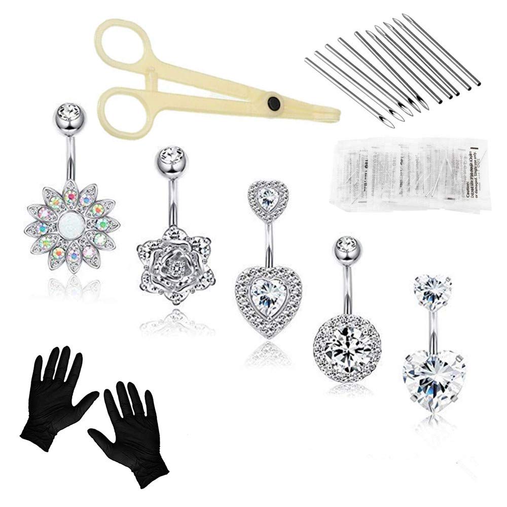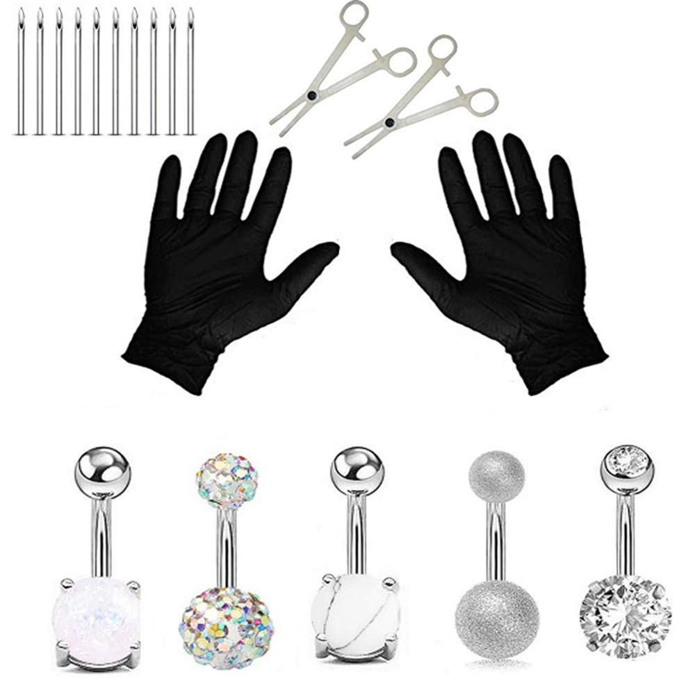 Professional Piercing Kit Silver Multicolor Steel 14G CZ Belly Navel Ring Body Piercing Set … …