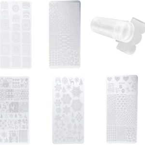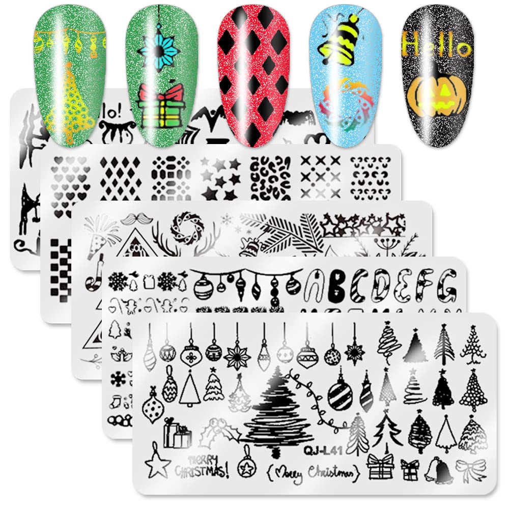 5Pcs Christmas HalloweeN Nail Stamping Plates Kit Set Holiday Stamp Plates Nail Art Tools For Manicure