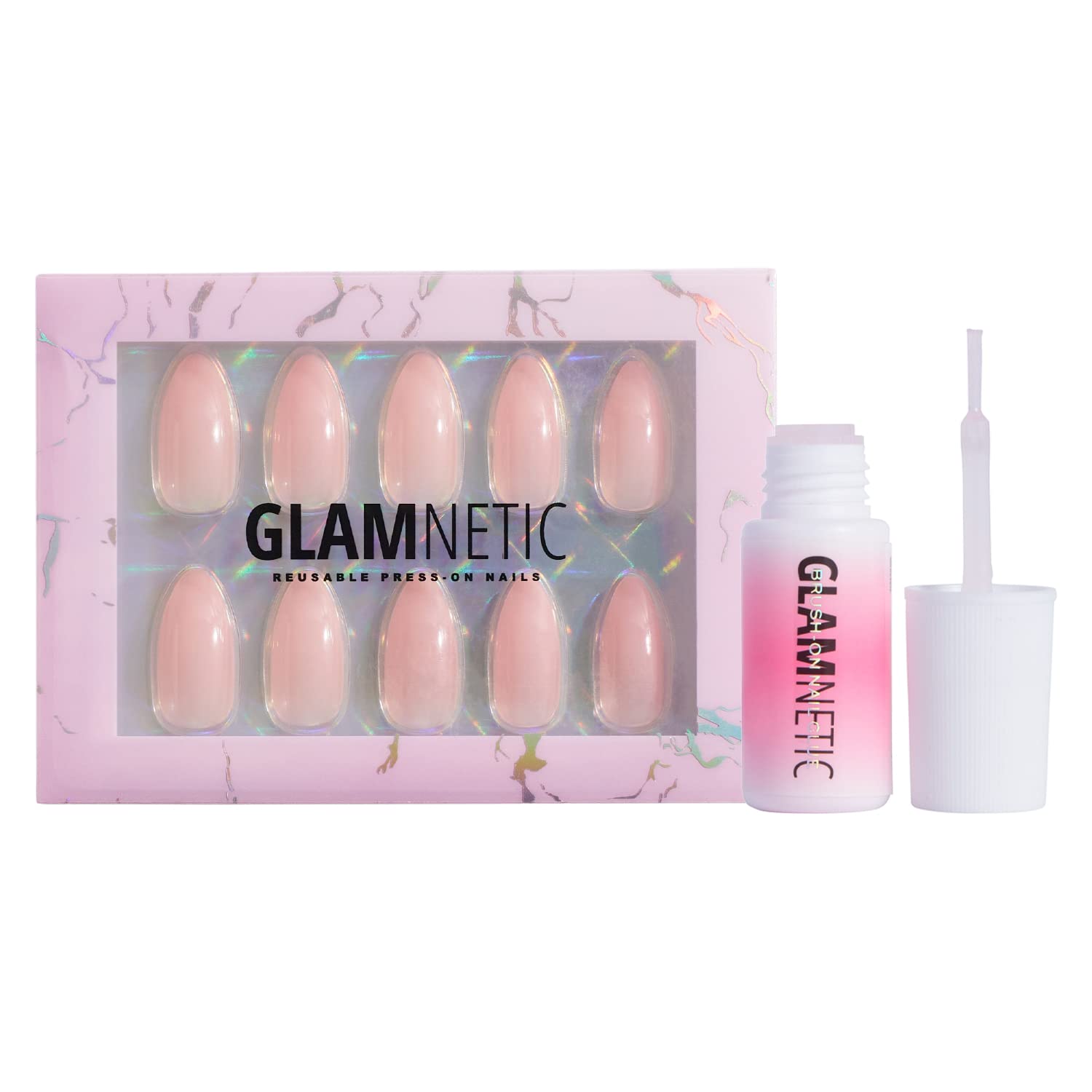 Cloud 9 Press On Nails and Brush On Nail Glue | Semi-Transparent Medium Pointed Almond Shape | Mess Free, Brush Tip Applicator | 24 Nails with Glue