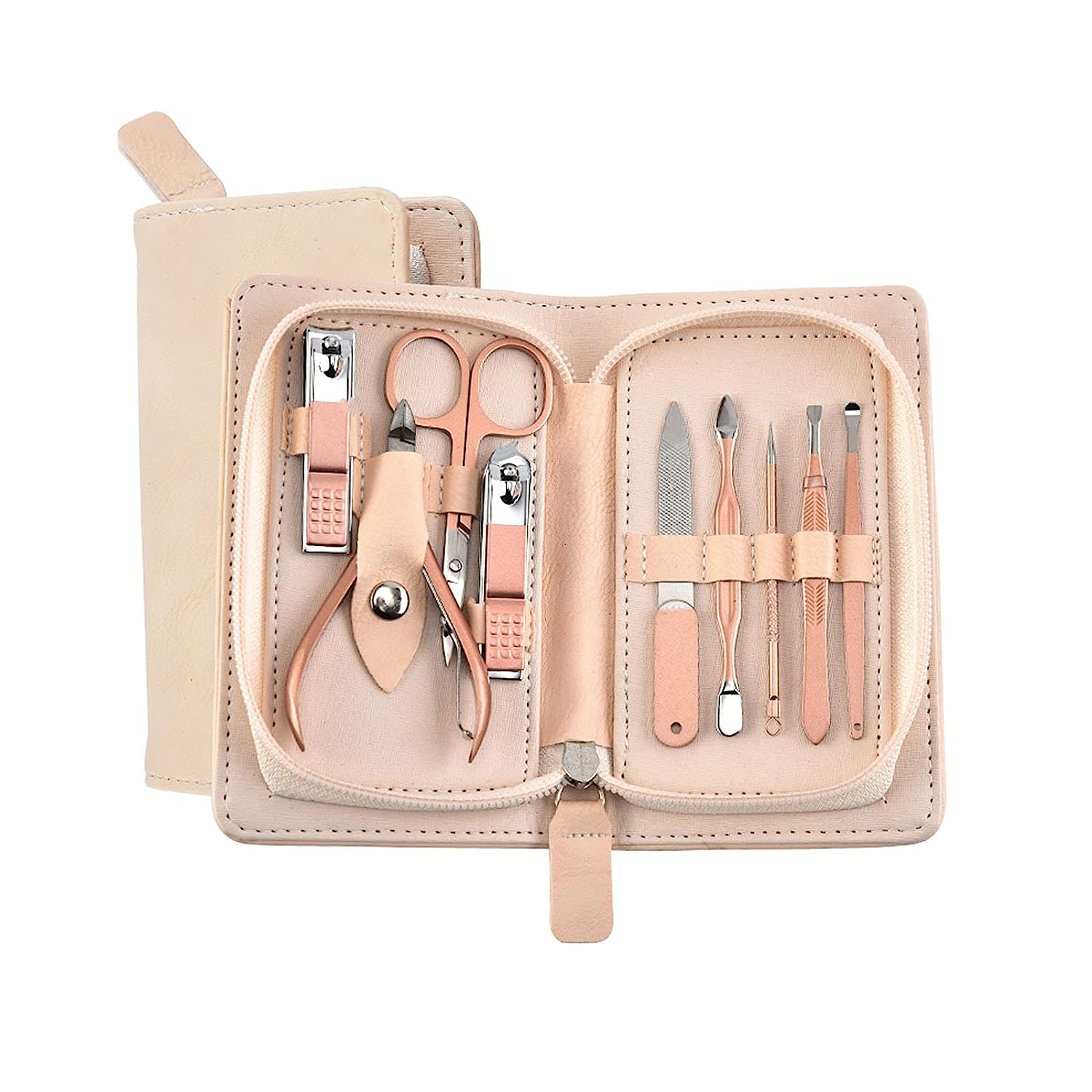 in1 Portable Manicure Set-Nail Clippers and Beauty Tool Set,Rose Gold Martensitic Stainless Steel Nail Care Set with Leather Bag,for Home-Outdoor-Travel-Beauty Salon,Gifts for Women -Girls